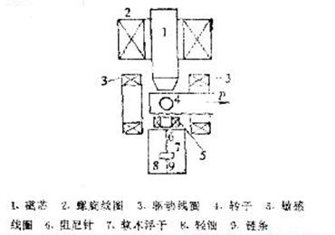 由圖22可見,除了用于磁懸浮轉(zhuǎn)子的螺旋線圈2外,在真空室下邊還設(shè)置一敏感線圈5,通過伺服電路控制螺旋線圈2的電流,使轉(zhuǎn)子懸浮在預(yù)定高度。在真空室兩側(cè)的一對驅(qū)動線圈3產(chǎn)生旋轉(zhuǎn)磁場,驅(qū)動轉(zhuǎn)子以每秒200~400轉(zhuǎn)的速度自轉(zhuǎn)。雖然轉(zhuǎn)子在給定的垂直位置會自動地趨向磁場處(一般在垂直對稱軸上),但若受外界擾動,轉(zhuǎn)子將圍繞軸作水平振動。圖中緊臨真空室下方的阻尼鋼針6可使這種振動衰減。